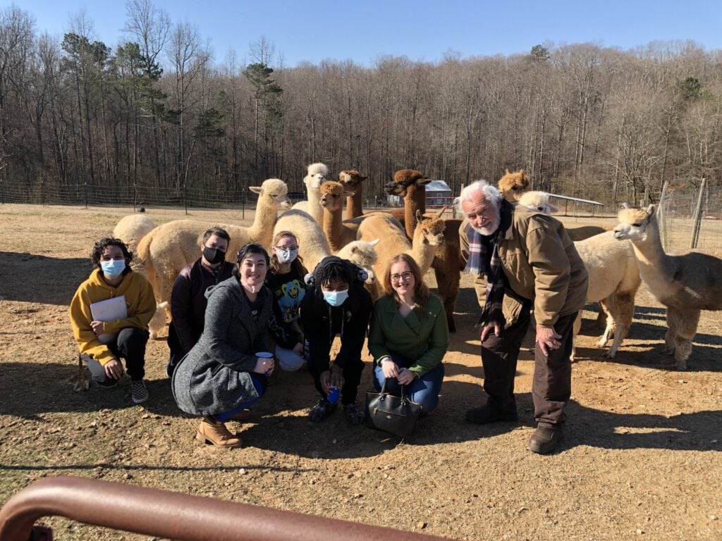 Brenau University’s FM 242 Fashion Textiles class recently visited Noa’s Ark Alpaca Farm in Gainesville and were led on a tour of the fiber mill by Jack Noa.