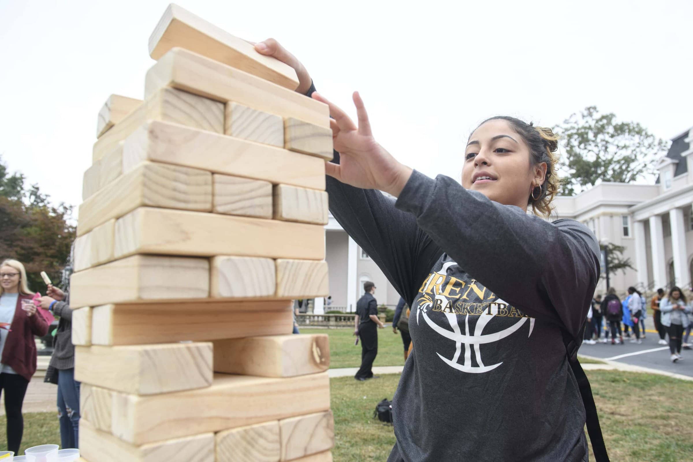 - Students participating in outside games on front lawn, (AJ Reynolds/Brenau University)