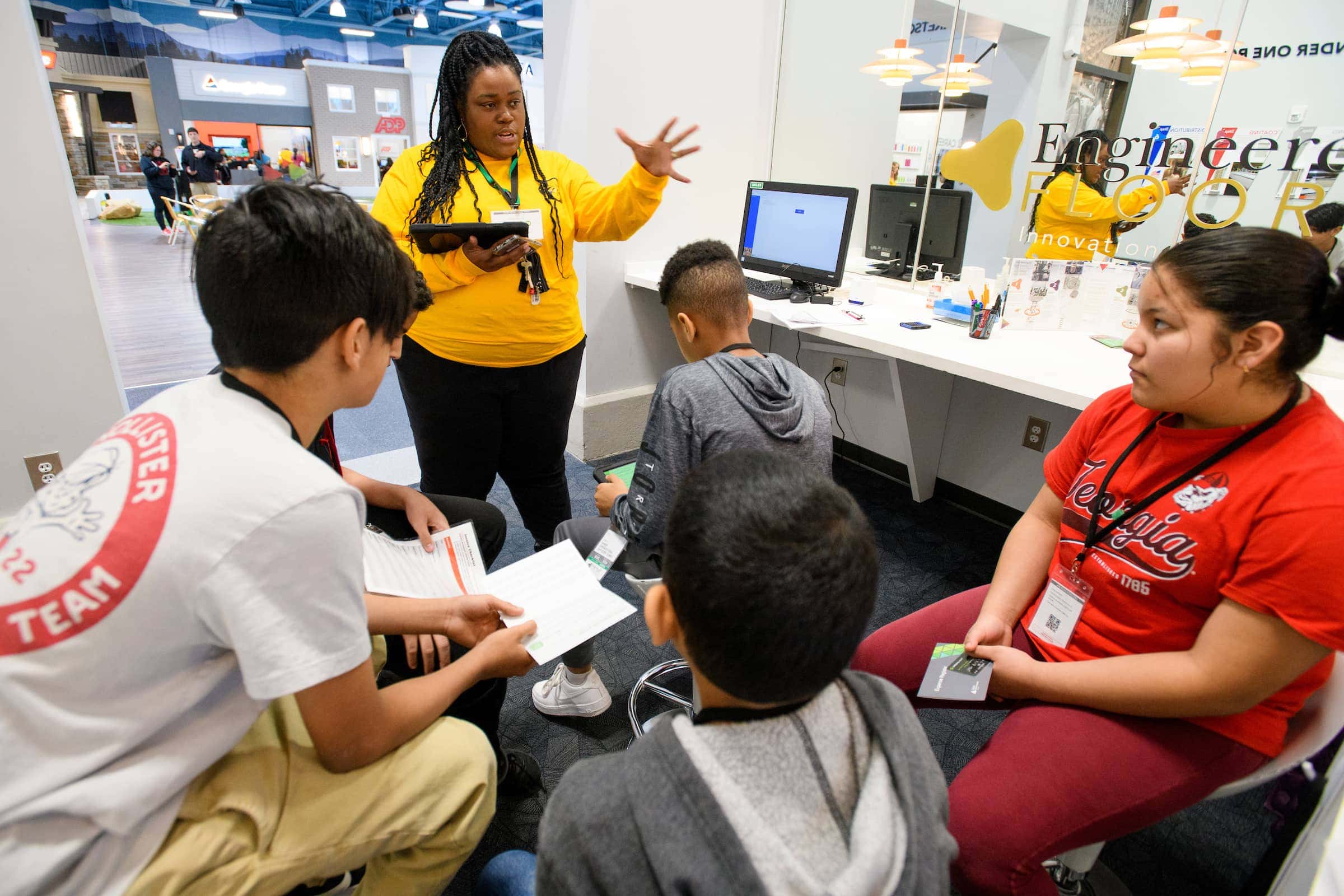 Brenau faculty and staff with two middle school studentsJA BizTown opened in August 2018 and last year served over 176,000 students from Calhoun City Schools, Dawson County Schools, Forsyth County Schools, Gainesville City Schools, Hall County Schools and Lumpkin County Schools. This is the third JA Discovery Center in Georgia, and it is located on the grounds of the Alliance Academy for Innovation of Cumming and Forsyth.