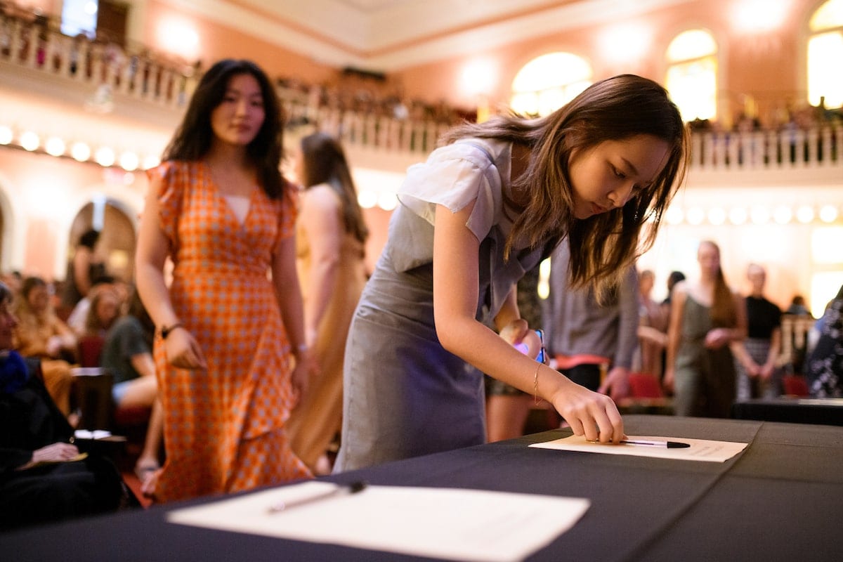 Every Fall Formal Convocation, to show their commitment to Brenau, new students individually sign the Honor Code, which asks students to “strive to create a spirit of honesty and honor.”