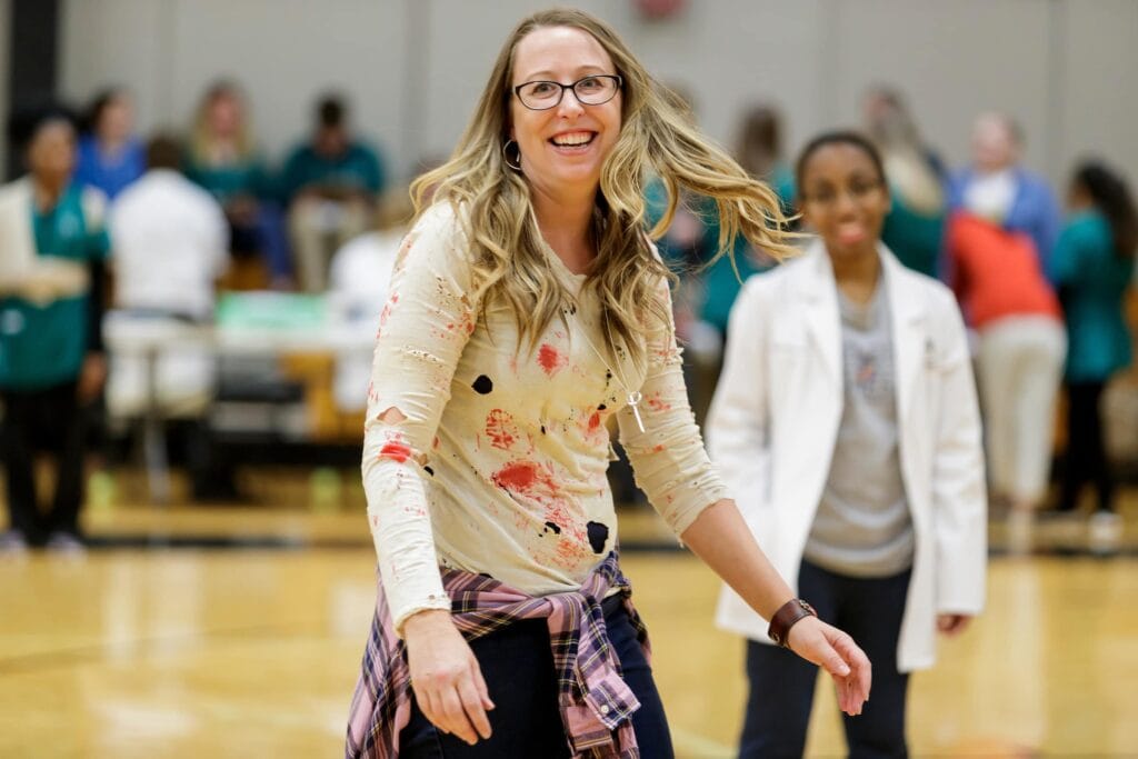 The zombie game involves an outbreak in the Fitness Center at Brenau — with Brenau faculty, staff and students in the Ivester College of Health Sciences dressed and made-up as zombies — and challenges the students to be on the front lines to contain the spreading Zombie epidemic.