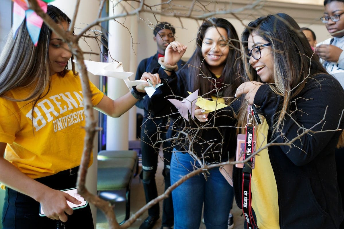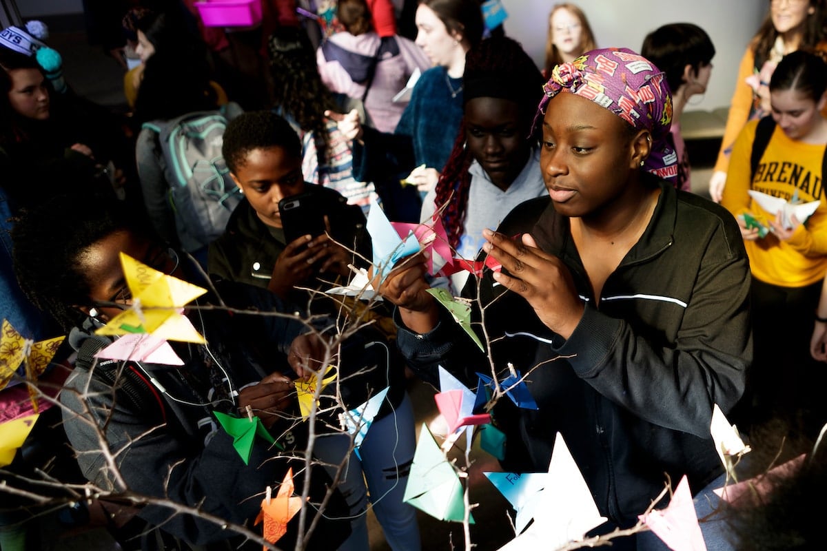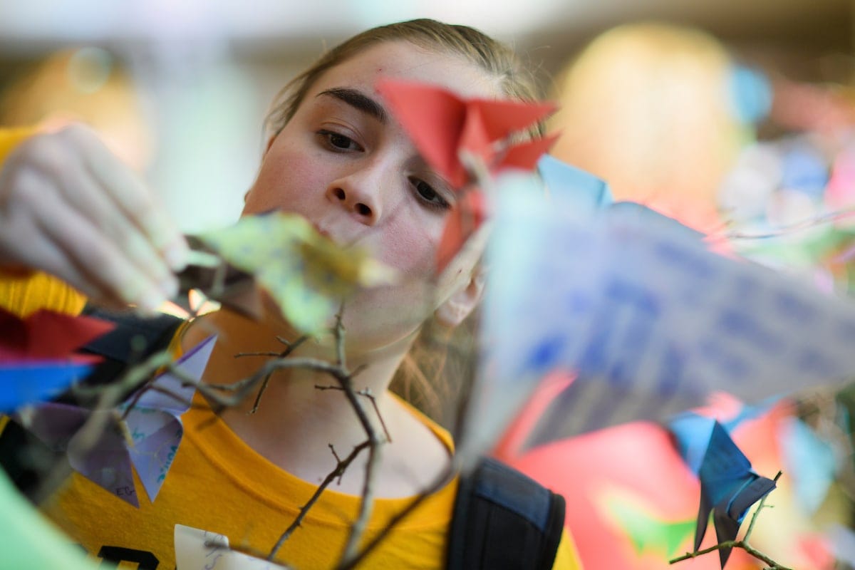 Students enrolled in the First-Year Experience, commonly known as FYE, made the origami butterflies in honor of “Las Mariposas” — three Dominican sisters who were assassinated in 1960 for their opposition of the dictator “El Jefe” Rafael Trujillo. In 1999, The United Nations General Assembly dedicated Nov. 25 in honor of these women: Patria, Minerva and Maria Theresa Mirabal.