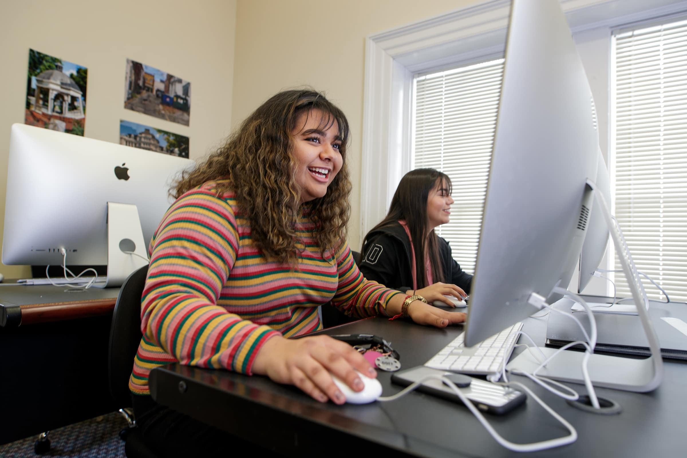 - Stephanie Contreras and Gabby Carillo use the Mac Lab to develop 3D rendered vessels in the Foundations 2D/3D Class