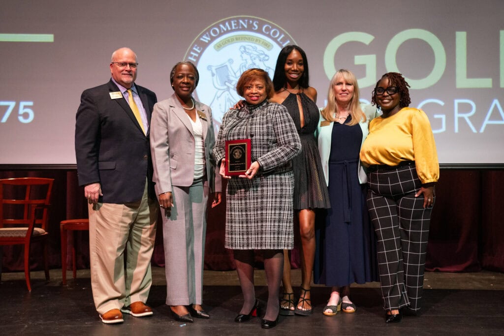 Michelle Gray Haywood, WC ’75, was honored with the Golden Trailblazer award following her speech in September at the annual GOLD Speaker Series, hosted by The Women’s College at Brenau University. The program brings an empowering speaker to campus to highlight an element of that year’s theme. The theme for 2024-25 was the “O” year, focusing on ownership of personal responsibility and civic engagement.
