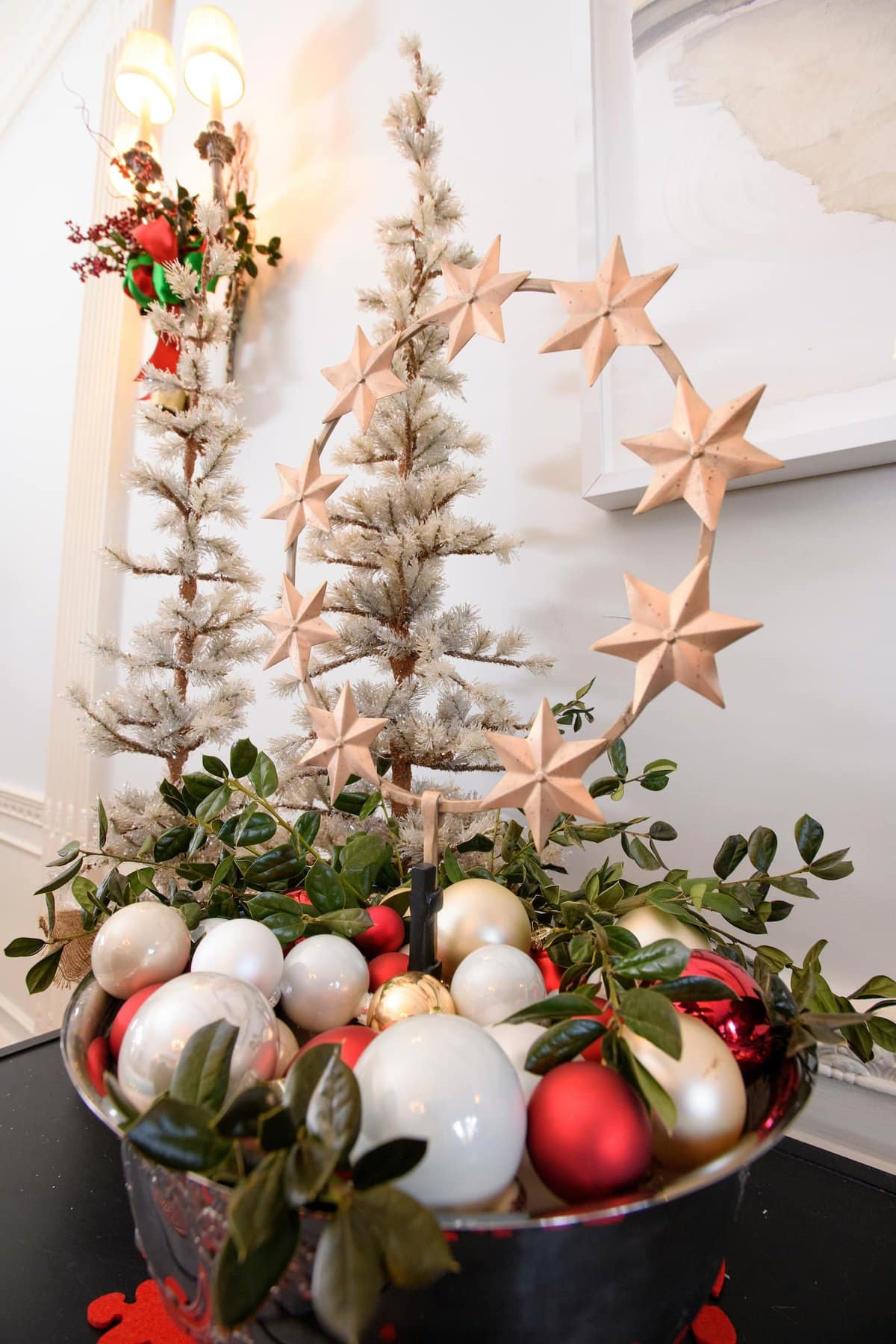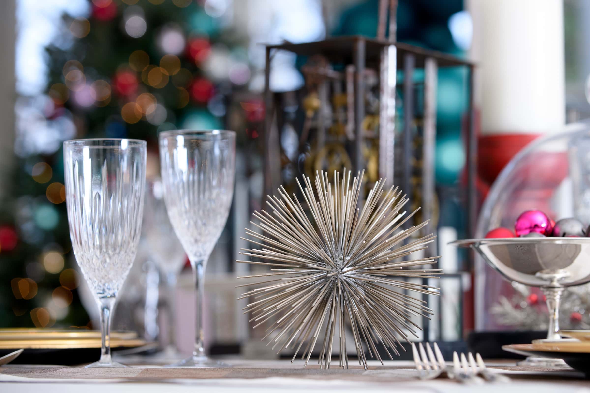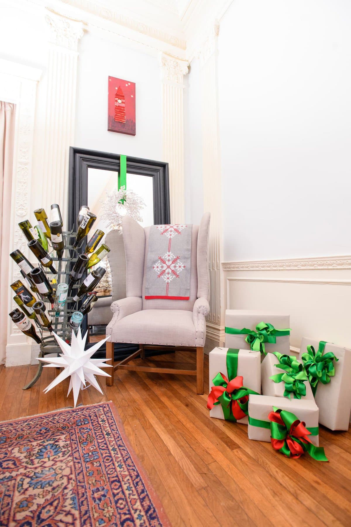 Kleeman said long, upholstered, high-back benches were used around the dining table to “emphasize the coziness of the space.” Chairs and harvest baskets were also used to decorate the room. Students decorated three Christmas trees and some were able to use last year’s handmade ornaments. Kleeman said the goal of the design was to strengthen the architecture that is already there.