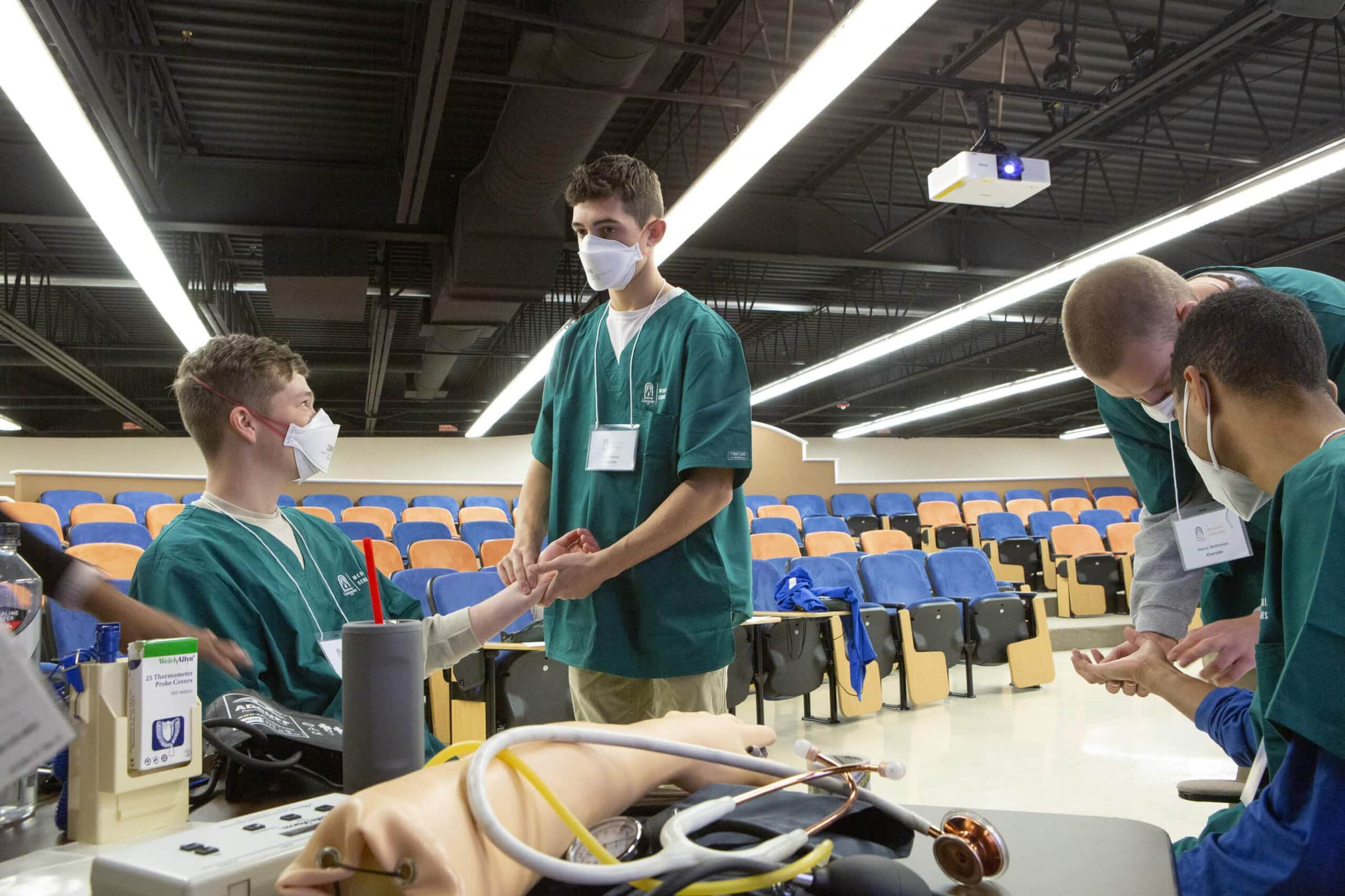 While the Medical Scholars Program in the past only included high school juniors, seniors are participating this year since the program was postponed in 2020. In another first, Brenau’s clinical and science students are also offering support and assistance as the high school students learn how to dress wounds, administer shots and work with patients.