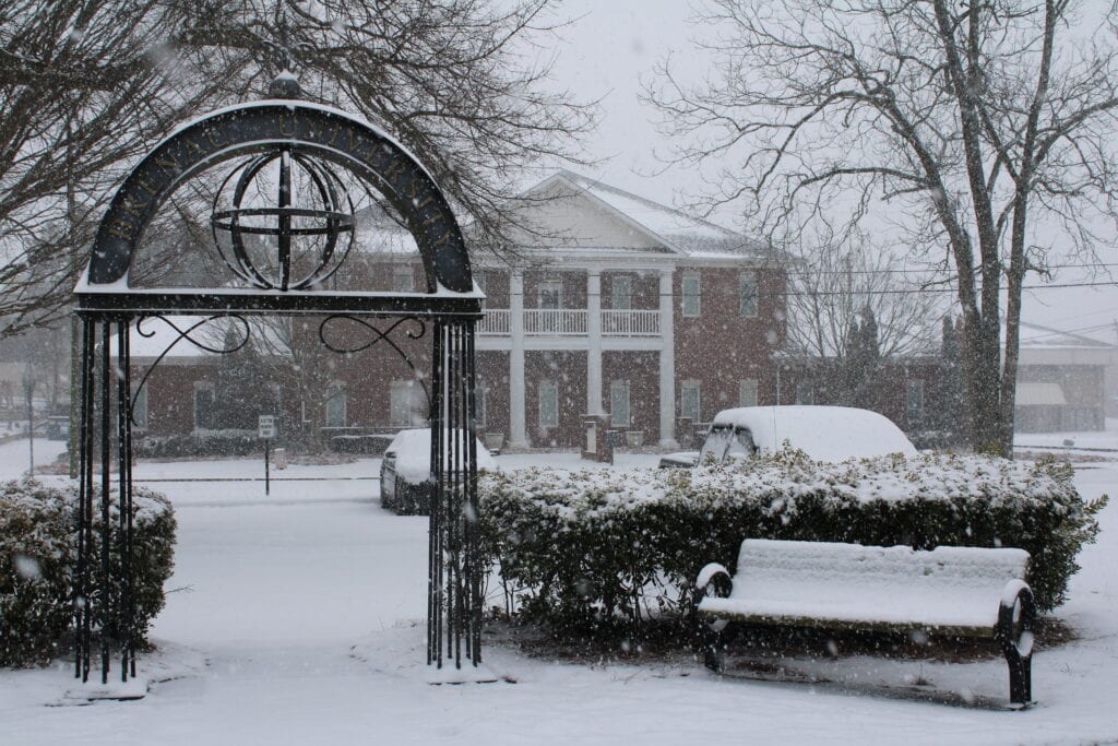 Just one week after a significant ice storm struck North Georgia, a second winter system moved through the region on Saturday, Jan. 31, dumping dry, powdery snow across Brenau University’s Historic Gainesville Campus.